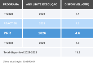 O PRR terá um período de execução até 2026 e vai implementar um conjunto de reformas e de investimentos para que o país possa retomar o crescimento económico sustentado, reforçando o objetivo de convergência com a Europa ao longo da próxima década.